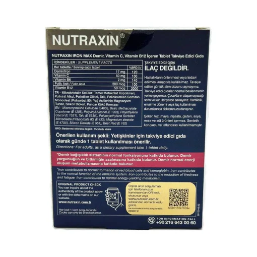 قرص آهن ایرون مکس نوتراکسین 30 عدد Nutraxin Vitals Iron Max