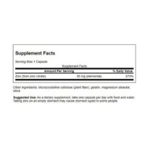 زینک سیترات: 50 میلیگرم در هر کپسول (معادل 15 میلیگرم زینک)