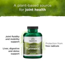 مکمل زردچوبه سوانسون Swanson Turmeric از سلامت کبد، گوارش و سم زدایی پشتیبانی می کند. زردچوبه، که به دلیل ماده فعال آن به نام کورکومین مشهور است، در طب سنتی به دلیل فواید ضد التهابی و آنتیاکسیدانی خود مورد استفاده قرار میگیرد.