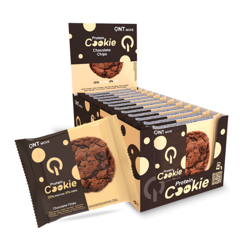 کوکی پروتئینی کیو ان تی با چیپس شکلاتی QNT PROTEIN COOKIE دارای بافتی نرم و دل پذیر است و در دو طعم چیپس شکلاتی و کارامل نمکی ساخته شده است، هر دوی این طعم ها 25 درصد پروتئین با کیفیت بالا را ارائه می دهد. این محصول نرم ترین کوکی پروتئینی است که ورزشکاران مبتدی یا پیشرفته و افراد فعال می توانند از آن به عنوان میان وعده استفاده کنند.