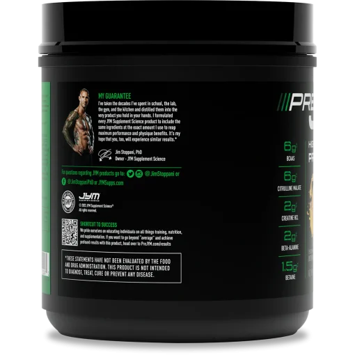 فرمول Pre JYM بر پایه آمینو اسیدها (بلوک های سازنده پروتئین) است که برای تمرینات شدید سوخت عضلات شما را فراهم می کنند. تنها محرک موجود در Pre JYM کافئین است که به دلیل مزایای افزایش عملکرد آن انتخاب شده است. اسیدهای آمینه مانند BCAA، کراتین، بتا آلانین و بتائین پایه و اساس دستاوردهای واقعی در قدرت، عضله سازی، استقامت و عملکرد کلی هستند.
