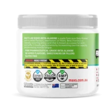 بتا آلانین مکسس MAX’S BETA-ALANINE از بتا آلانین خالص ساخته شده است، بدون ظعم دهنده، شیرین کننده یا فیلر ساخته شده است. بتا آلانین یک اسید آمینه طبیعی است که به عنوان یک بافر قوی اسید لاکتیک شناخته می شود. با افزایش ظرفیت ورزش و کاهش خستگی عضلانی عملکرد را افزایش می دهد.