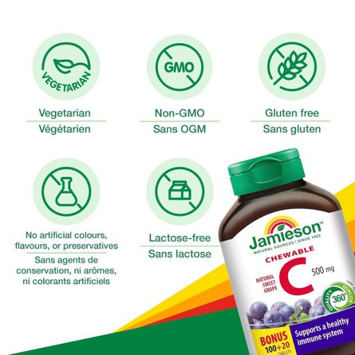 ویتامین سی جمیسون 500 میل 120 عدد Jamieson Vitamin C طعم انگور