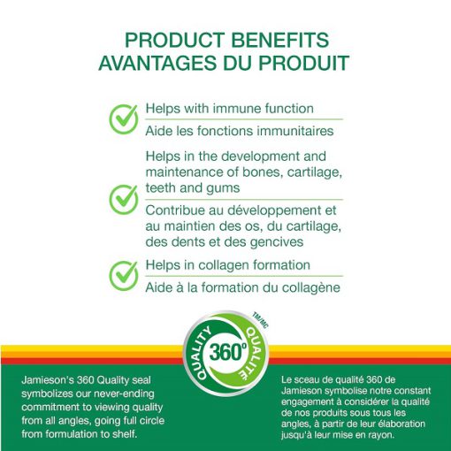 ویتامین سی جمیسون 500 میل 120 عدد Jamieson Vitamin C طعم پرتقال بهعنوان یک مکمل ویتامین C با طعم خوشمزه پرتقال، برای تقویت سیستم ایمنی، بهبود سلامت پوست و جذب بهتر آهن ساخته شده است. این محصول بهویژه برای کسانی که به دنبال یک روش خوشمزه و راحت برای تأمین نیازهای روزانه ویتامین C خود هستند، مناسب است.