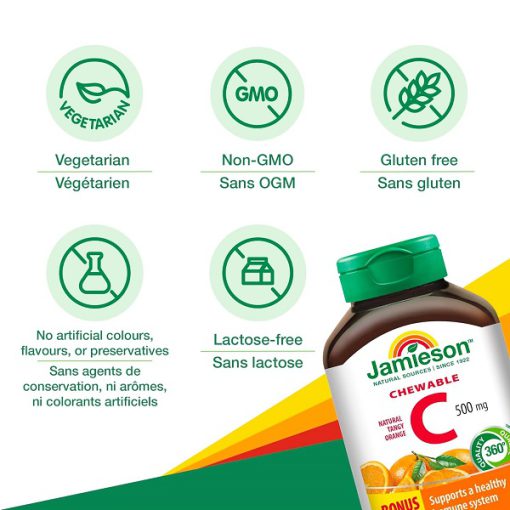 ویتامین سی جمیسون 500 میل 120 عدد طعم پرتقال Jamieson Vitamin C