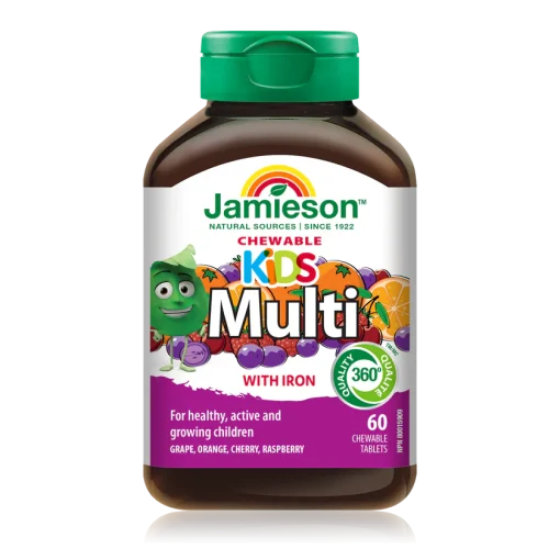 مولتی ویتامین کودکانه جمیسون 60 عدد Jamieson Kids Chewable Multi با تامین ویتامینها و مواد معدنی ضروری در قالبی خوشمزه و جذاب، به رشد و سلامت کلی کودکان کمک میکند و مصرف آن را برای کودکان آسان و لذتبخش میسازد.