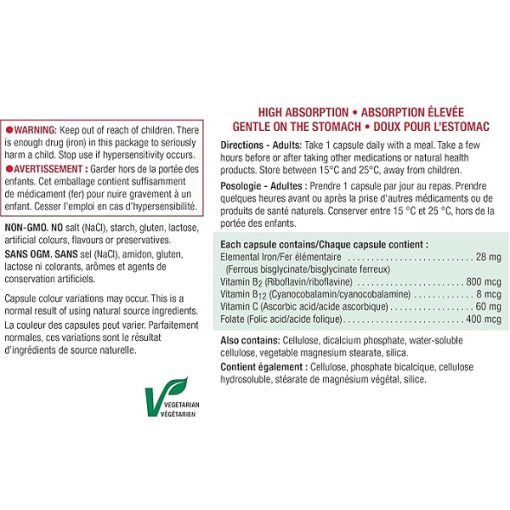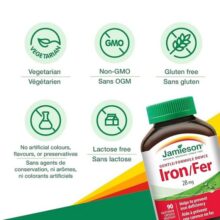 Jamieson Gentle Iron با استفاده از فرمول بیسگلیسینات آهنی تولید شده است، که یکی از ملایمترین انواع آهن برای دستگاه گوارش است. این فرمول برای افرادی که از عوارض گوارشی ناشی از مصرف آهن مانند تهوع، یبوست یا درد معده رنج میبرند، بسیار مناسب است.