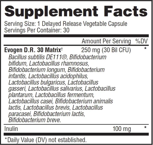 پروبیوتیک ایوژن دی. آر. 30 بهترین بهینه ساز فلور روده برای بررسی تمام مسائل فوق الذکر است. در حالی که حاوی 30 Bil CFU می باشد، پروبیوتیک D.R. 30 همچنین از DE111® ثبت شده استفاده می کند. که از نظر بالینی آزمایش شده و نشان داده شده است که از سلامت ایمنی و بهبود گوارش حمایت می کند.