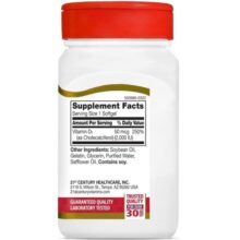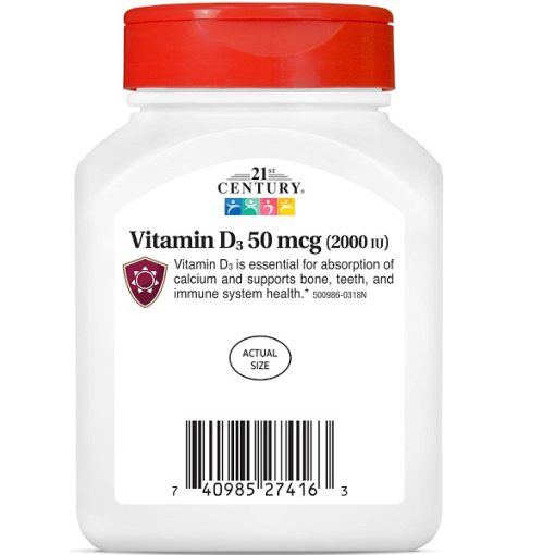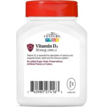 ویتامین دی سنتری 250 عدد 21st Century D3 2000 IU یک ویتامین محلول در چربی است که نقشهای مهمی در سلامت بدن ایفا میکند. این مکمل ویتامین D3 به ویژه برای افرادی که نیاز به تقویت سیستم ایمنی و سلامت استخوانها دارند، مفید است و کمک میکند تا از کمبود ویتامین D3 در بدن جلوگیری شود.