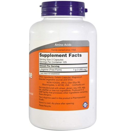NOW L-Arginine هر کپسول حاوی 500 میلیگرم L-Arginine است. این مقدار مناسب برای بهرهمندی از خواص درمانی و بهبود عملکرد این آمینواسید است.