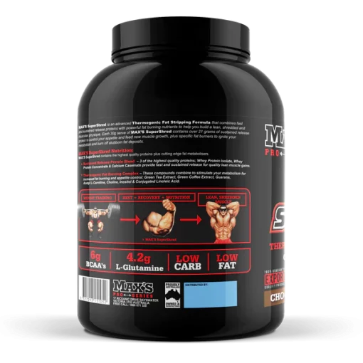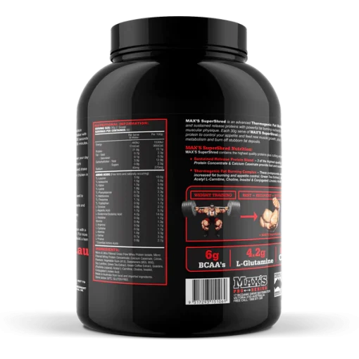 سوپر شرد سیستم مکسس 1.85 کیلو MAX’s Super Shred System با ترکیب پروتئینهای با آزادسازی سریع و پایدار و ترکیبات ترموژنیک، به عنوان یک مکمل پیشرفته برای کاهش چربی و ساخت عضلات لاغر شناخته میشود. این محصول برای کسانی که به دنبال کاهش چربی و افزایش توده عضلانی هستند، به ویژه در فازهای مختلف رژیمهای بدنسازی و کاهش چربی مناسب است. با توجه به ترکیبات با کیفیت و نحوه مصرف آسان، این مکمل میتواند به شما در دستیابی به اهداف فیتنس خود کمک کند.