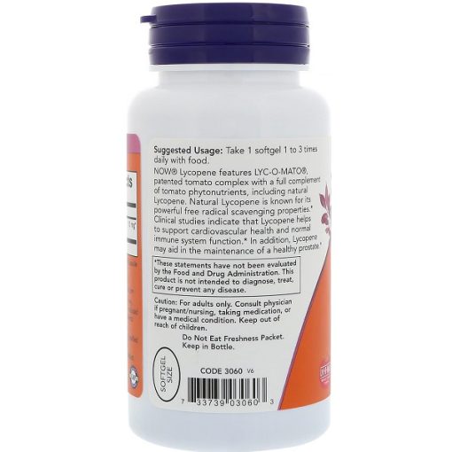 کپسولهای لیکوپن NOW شامل LYC-O-MATO® هستند، یک مجتمع گوجهفرنگی ثبت شده که حاوی ترکیبی کامل از مواد مغذی گیاهی موجود در گوجهفرنگی، از جمله لیکوپن طبیعی، است. این ترکیب به ارائه خواص مفید لیکوپن به شکل بهینه کمک میکند.