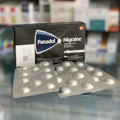 میگرن پانادول Panadol Migraine یک داروی ترکیبی حاوی استامینوفن (پاراستامول)، آسپرین (اسید استیل سالیسیلیک) و کافئین است. پاراستامول دارای اثر ضد درد، تب بر و ضد التهابی بسیار ضعیف است که با تأثیر آن بر مرکز تنظیم حرارت در هیپوتالاموس و توانایی ضعیف بیان شده در مهار سنتز پروستاگلاندین ها در بافت های محیطی همراه است. اسید استیل سالیسیلیک دارای اثرات ضد درد، تب بر و ضد التهابی است. درد را بهویژه در اثر فرآیند التهابی تسکین میدهد و همچنین به طور متوسطی از تجمع پلاکتها جلوگیری میکند و روند تشکیل ترومبوز را کند میکند و میکروسیرکولاسیون را در کانون التهاب بهبود میبخشد. کافئین تحریک پذیری رفلکس نخاع را افزایش می دهد، مراکز تنفسی و وازوموتور را تحریک می کند، رگ های خونی ماهیچه های اسکلتی، مغز، قلب، کلیه را گشاد می کند، تجمع پلاکت ها را کاهش می دهد. خواب آلودگی، خستگی را کاهش می دهد، عملکرد ذهنی و جسمی را افزایش می دهد. در این ترکیب، دوز کمی از کافئین دارد که عملاً اثر تحریک کننده ای روی سیستم عصبی مرکزی ندارد، با این حال به عادی سازی عروق مغز و تسریع جریان خون در آن کمک می کند.
