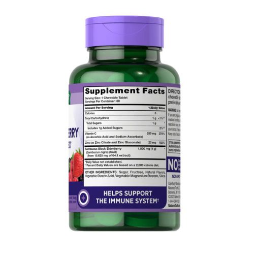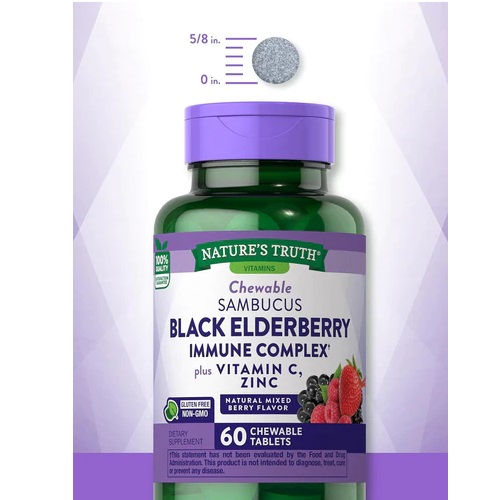 برای استفاده از Nature’s Truth Sambucus Black Elderberry Complex کافیست که یک قرص جویدنی که دارای طعم طبیعی میوه است را مصرف کنید. هر قرص جویدنی در روز معادل 1000 میلی گرم آقطی سیاه، 250 میلی گرم ویتامین C و 20 میلی گرم زینک است که به سلامت و تندرستی شما کمک می کند. هر بطری نیاز دو ماه شما را برآورده می کند. این محصول فاقد گلوتن، لبنیات، سویا، رنک های مصنوعی، طعم دهنده های مصنوعی، شیرین کننده های مصنوعی و مواد نگهدارنده است بنابراین حتی افراد گیاهخوار هم می توانند از آن استفاده کنند.