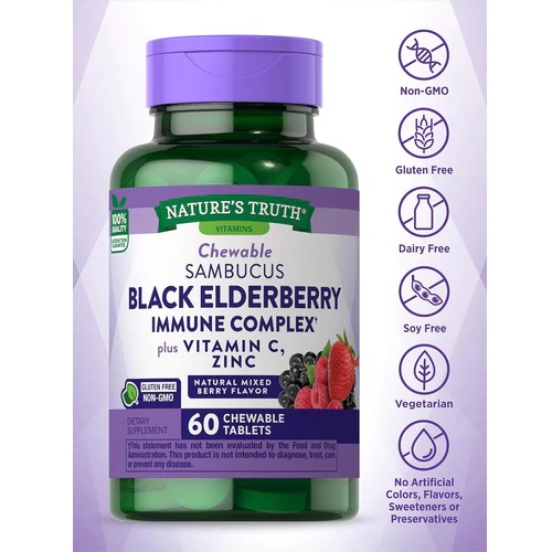 بلک الدربری نیچرز تریث Nature’s Truth Black Elderberry Immune Complex حاوی عصاره الدربری سیاه است. این توت سیاه قرن ها توسط بومیان آمریکا و مصر باستان استفاده شده است. الدبری موجود در این محصول به طور انحصاری از کوه های اتریش، جایی که خاک مملو از مواد معدنی ضروری است، برداشت می شود و بهترین چشم انداز را برای شکوفه دادن و رشد این میوه های غنی از مواد مغذی فراهم می کند. به طور طبیعی سرشار از آنتی اکسیدان ها و فلاونوئیدها است به همین دلیل الدربری یک افزودنی ارزشمند برای روتین های سلامتی شما است. این محصول فاقد GMO، لبنیات، سویا، رنگ های مصنوعی، طعم دهنده های مصنوعی، شیرین کننده های مصنوعی یا مواد نگهدارنده است.