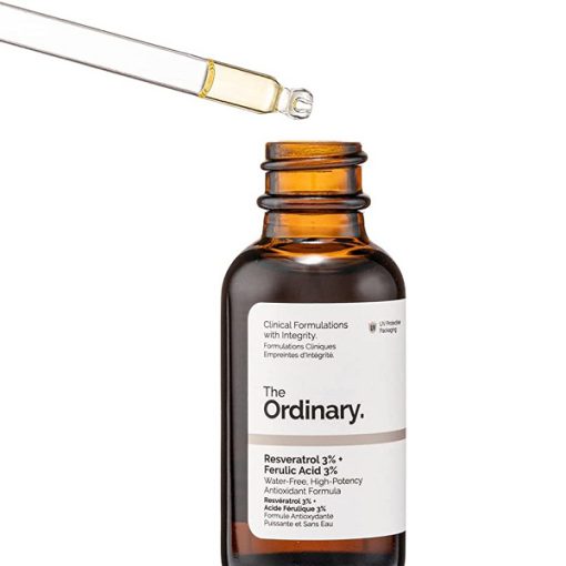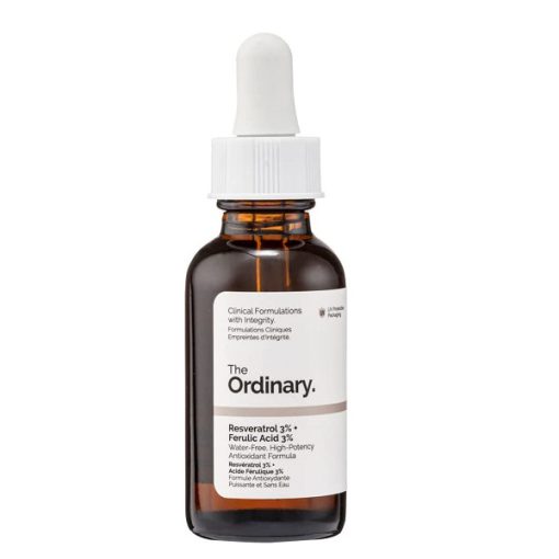 سرم آنتی اکسیدان و ضد پیری رسوراترول و اسید فرولیک اوردینری The Ordinary Resveratrol 3% + Ferulic Acid 3% به محافظت از پوست در برابر علائم پیری کمک می کند. این فرمول ترکیبی از غلظت های بسیار بالا از دو مورد از قوی ترین و مهم ترین آنتی اکسیدان ها در مراقبت از پوست است (رسوراترول و اسید فرولیک). رسوراترول یک فنل طبیعی است که در چندین گیاه یافت می شود و منبع صد در صد خالص این مکمل از Knotweed ژاپنی مشتق شده است. فرولیک اسید یک آنتی اکسیدان فیتوشیمیایی با قدرت بالا است که به طور طبیعی در دیواره سلول های گیاهی یافت می شود.