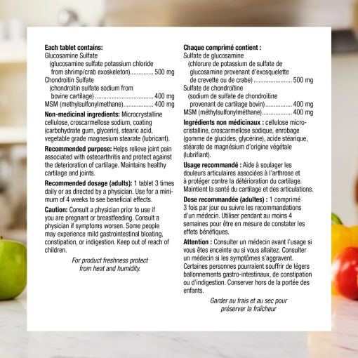 این فرمول دارای MSM برای حمایت از ریکاوری مفاصل و عضلات پس از ورزش و مناسب برای افراد فعال مناسب است. عملکرد سه گانه گلوکزامین، کندرویتین و MSM ارزش بیشتری نسبت به مکمل با چندین مکمل به تنهایی فراهم می کند.