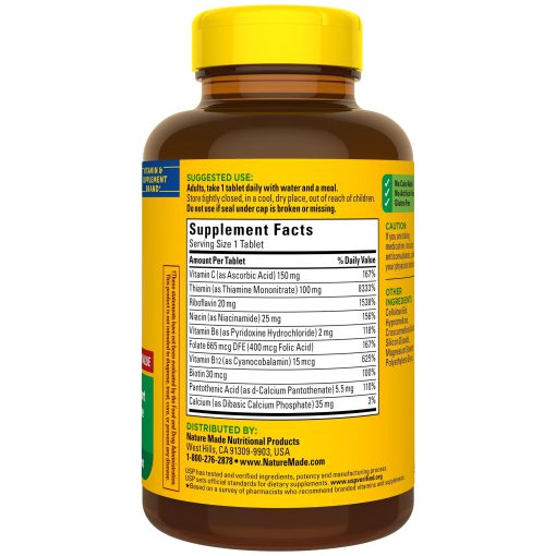 سوپر ب کمپلکس نیچرمید حاوی تمام هشت ویتامین B ضروری را برای حمایت از متابولیسم انرژی و همچنین مغز و سیستم عصبی سالم است. مکمل نیچرمید همچنین حاوی ویتامین C برای کمک به حمایت از سیستم ایمنی می باشد. تمام این پشتیبانی فقط در یک قرص روزانه ارائه می شود.