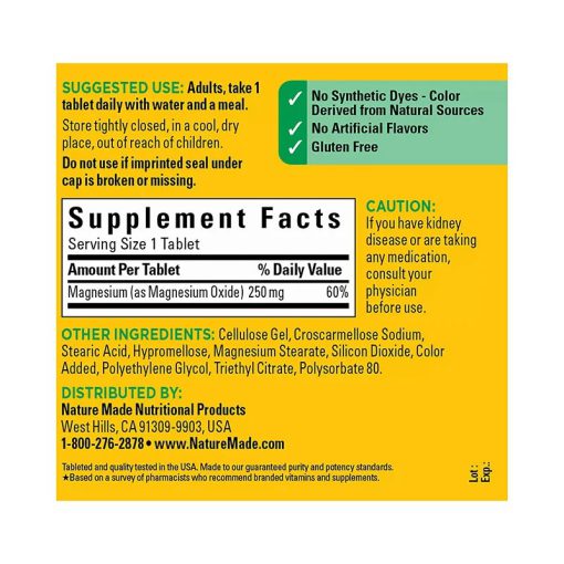 منیزیم 250 میلی گرم نیچرمید Magnesium 250 mg Tablets Nature Made