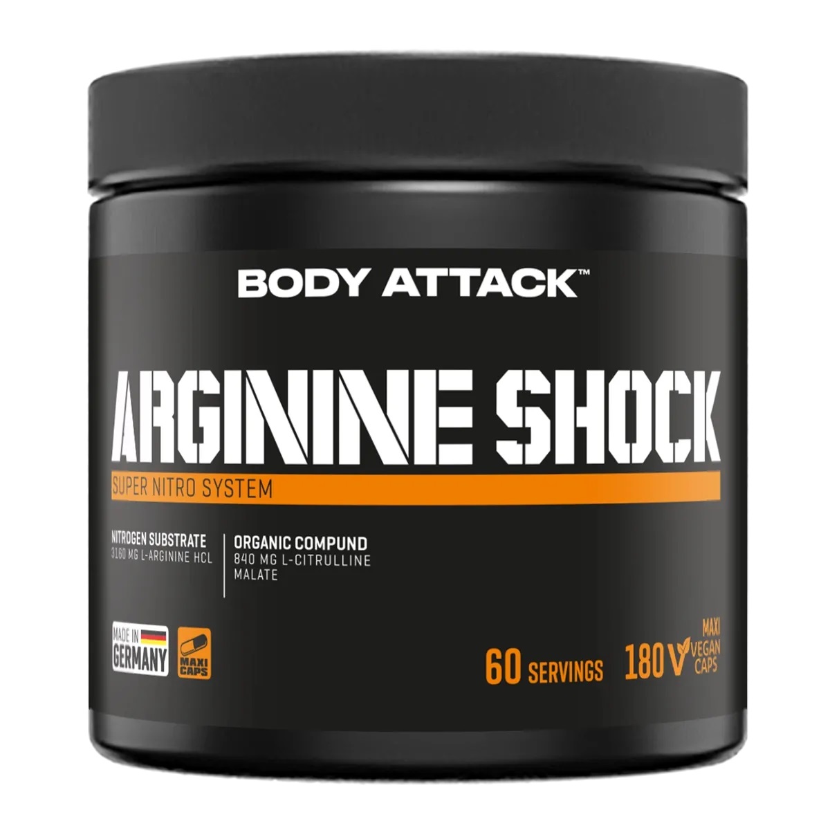 آرژنین شوک بادی اتک آرژنین مکمل غذایی برای افزایش قدرت و متابولیسم پروتئین حاوی سیترولین برای اثر گزگز و کپسول ماکسی برای ماده فعال تر است.