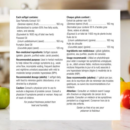 این محصول حاوی 160 میلیگرم عصاره استاندارد شده نخل اره است که شامل 85 تا 95 درصد اسیدهای چرب و استرول میباشد. این ترکیبات فعال اصلی به بهبود عملکرد پروستات و کاهش علائم اورولوژیک کمک میکنند.