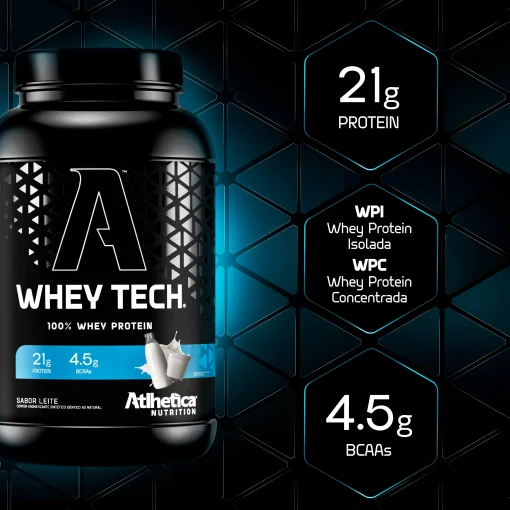 مهمترین ویژگی های پروتئین وی Whey Tech leite اتلتیکا 900 گرم عبارتند از: