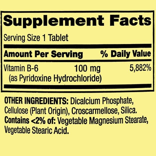 دوز پیشنهادی برای بزرگسالان یک قرص در روز، ترجیحا همراه با غذا است. می توانید مطمئن باشید که مکمل 100 میلی گرمی ویتامین B6 اسپرینگ والی با دستورالعمل های کیفیت دقیق و با ضمانت کیفیت اسپرینگ والی تولید می شود.