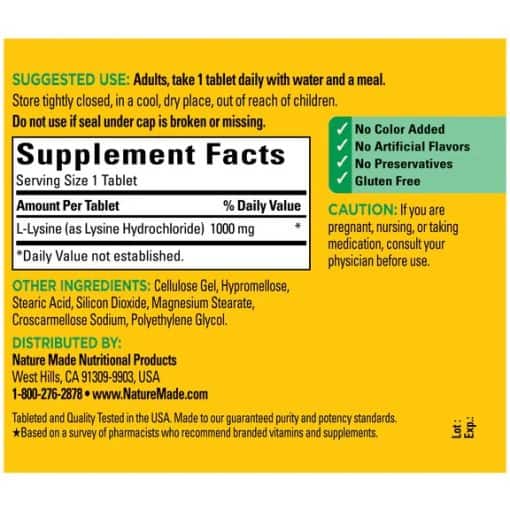 ال لیزین نیچرمید 60 عددی Nature Made L-Lysine 1000 mg Tablets