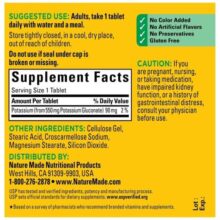 USP مواد تشکیل دهنده، قدرت و فرآیند تولید را آزمایش و تأیید کرده است. USP استانداردهای رسمی برای مکمل های غذایی تعیین می کند. مکمل پتاسیم گلوکونات نیچرمید 100 عددی حاوی 90 میلی گرم پتاسیم از 550 میلی گرم گلوکونات پتاسیم است.