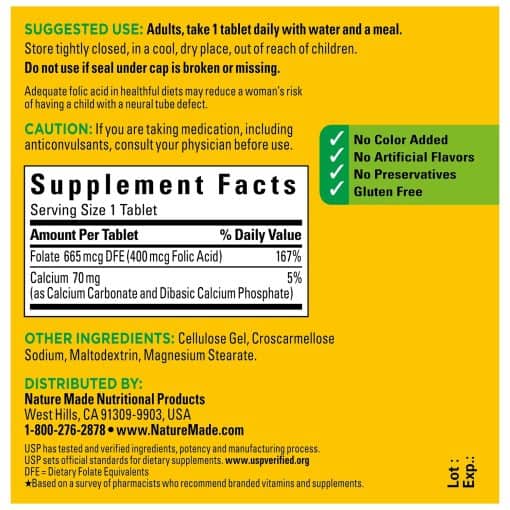 اسید فولیک نیچرمید 250 عددی Nature Made Folic Acid 400 mcg (665 mcg DFE)