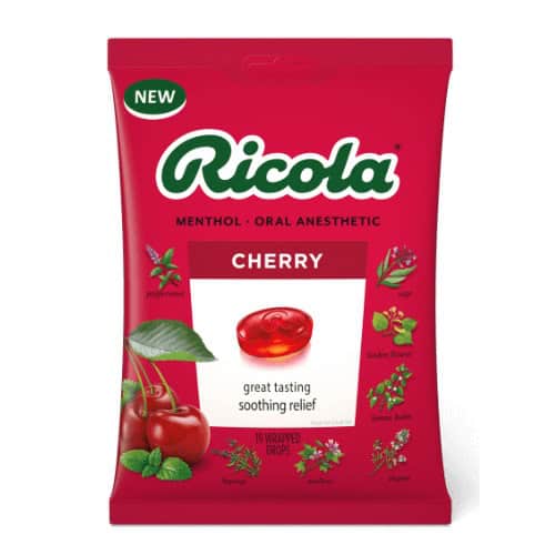 آبنبات سرفه گیلاس ریکولا با شیرینی آبدار گیلاس، سوزش روزانه گلو را تسکین می دهد.