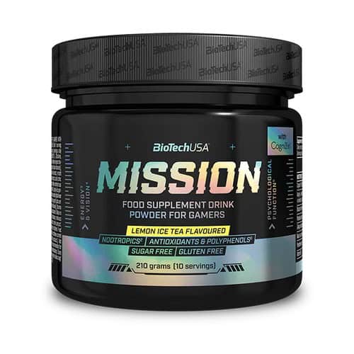 پودر نوشیدنی میشن بایوتک یک مکمل غذایی بدون شکر برای گیمرها همراه با سیتیکولین، ویتامین ها، کافئین و شیرین کننده Cognizin® است.